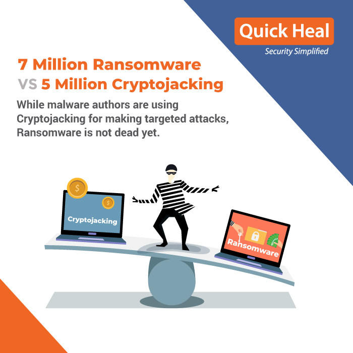 #Cryptojacking #Malware #Ransomware #Threat Report Quick Heal Threat Report – Cryptojacking rising but Ransomware still #1 threat for consumers In wake of the growing incidences of targeted cyber-attacks on enterprises using Cryptojacking, due to its ease of deployment and Sushmita Kalashikar / 7 years Comment (2) (54)