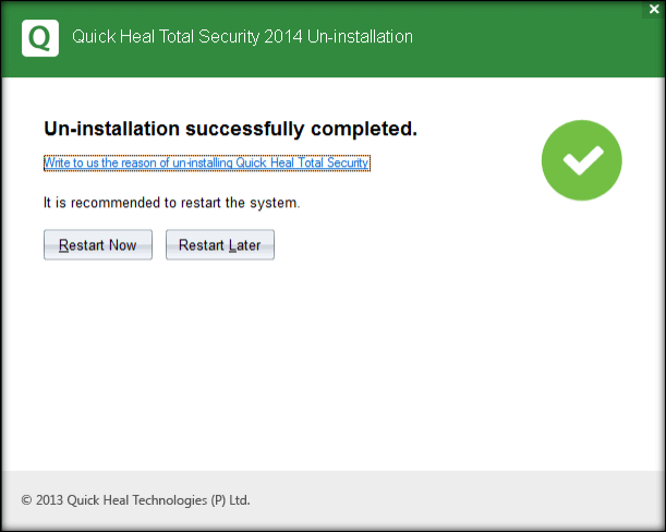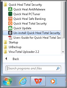 Step 2: Click Uninstall Quick Heal from Start-Programs-Quick Heal group.