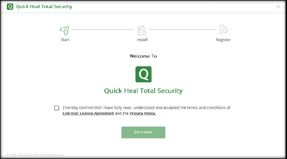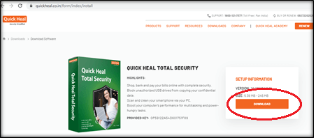 Step 1: Download the latest software of Quick Heal from the link: https://www.quickheal.com/installer