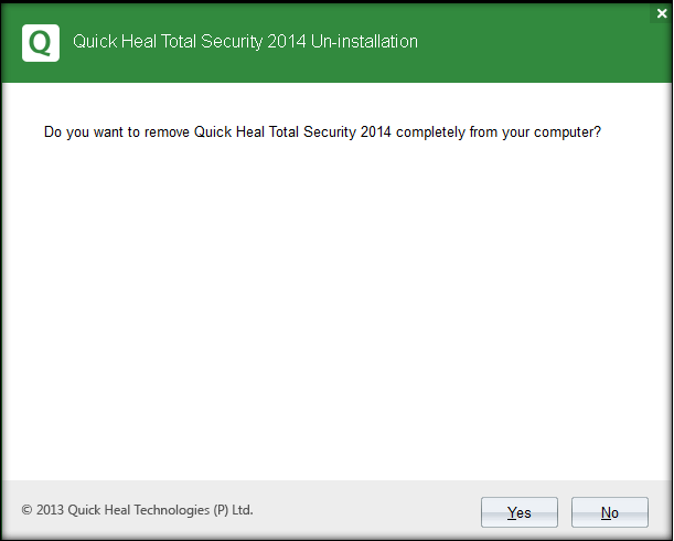Step 3: Click on Yes to remove Quick Heal completely