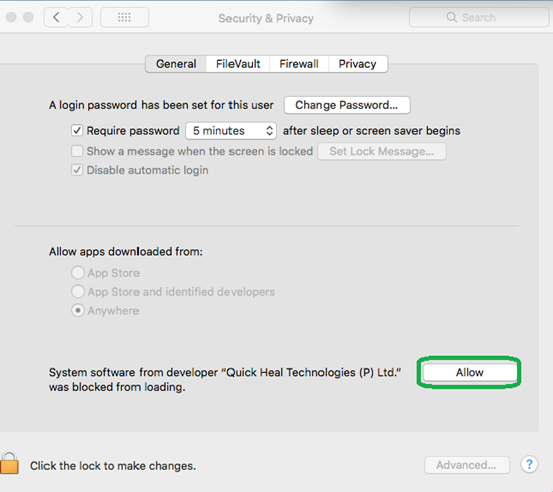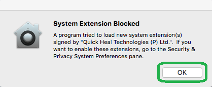 NOTE: If you do not Allow to load Kernel Extensions, Quick Heal Total Security will not be able to secure your computer against viruses, malicious websites, spam emails, and suspicious programs. Your computer will be at risk.