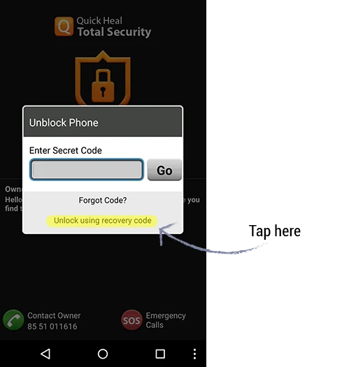 Step 1: On the Quick Heal Total Security Block Screen, tap on the Unblock button.